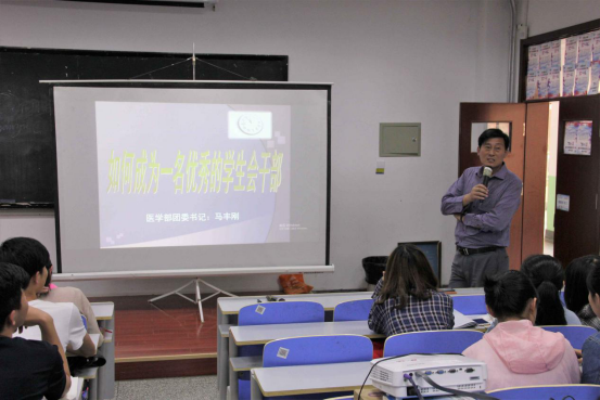 5月26日14:30,医学部在博学楼104教室举办学生会、社团联合会和医诚志愿服务团新当选成员培训会,医学部团委书记马丰刚就“如何成为一名优秀的学生会干部”对新任干部进行培训。学生工作办公室主任于文洁老师出席培训会并发言。