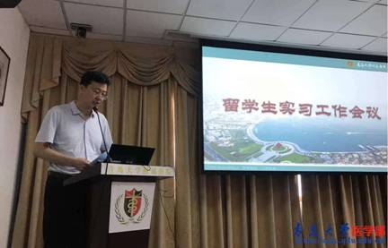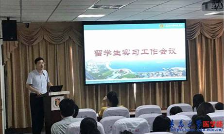 医学部本科教学与留学生管理办公室杨永洁老师在会上强调了留学生实习期间的请假规定,宣读了对近期违纪留学生的处理文件,留学生代表分别宣读了英文规定及文件。