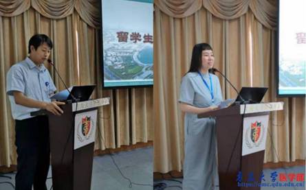 随后,两名留学生代表分别介绍了在医院实习的经验,将在附属医院实习生活中的收获与所得与大家进行了分享,同时也提出了建议和期望。