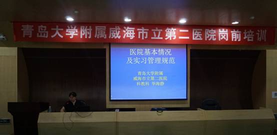 2019~2020学年秋季学期伊始,青岛大学第六临床医学院(附属威海市立第二医院)对全体实习医生开展了岗前培训主题教育活动,此次实习岗前培训主题教育活动由科教科组织,邀请分管教学工作的王锦乾副院长,感染管理与疾病控制科、药剂科、医务科、质管办、纪检监察室、急诊科、麻醉科等科主任及优秀教师为全体实习生进行岗前培训教育。