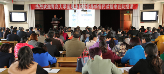莒县人民医院是医学部的教学医院之一,近年来,随着医院硬件规模的扩大和管理水平的提高,也不断努力提高教学水平,在去年医学部举办的第五届临床教学查房大赛上,该院的胡小伟老师获得了特等奖的优异成绩。为了更好地发挥医教协同的作用,使医院更好地适应新的教学要求。今年秋季学期,莒县人民医院开展了系列教学培训工作。2017年11月6日上午,医院特别邀请了医学部教学督导杨鲁民教授,开展教学督导和专题讲座活动。杨教授在该院大教室观摩理论课后,用现场授课的方式展示了讲好大课的具体方法:强调有特色、抓重点、多互动才能达到生动、易懂易记的效果。