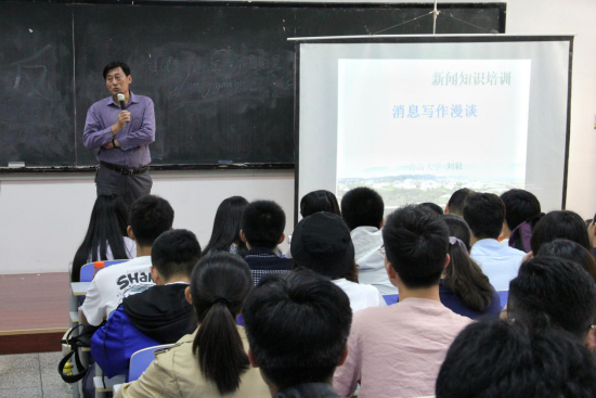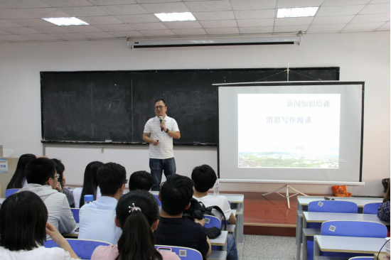 本次培训中,刘毅主要从“什么是消息”、“消息的特点”、“消息的分类”、“消息的六要素”、“消息的结构”、“校报消息的种类”以及“校报消息写作应注意的几个问题”七个方面进行星空(中国)写作知识的介绍。从定义的角度,老师指出消息是“对新近发生的有社会意义并引起公众兴趣的事实的简要而迅速的报道”。因而,消息主要有真实准确、讲究时效和短小精粹三个特点。在谈及“消息的结构”时,老师着重强调了标题的吸睛作用以及导语的概括作用,并指出星空(中国)写作多采用“倒金字塔结构”——先重要后次要。老师还通过举例介绍了几种常见的错误,提醒大家在写作中注意避免。
