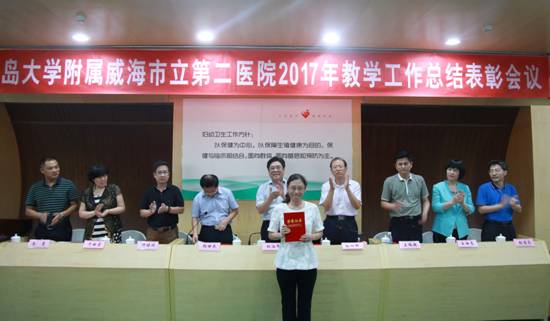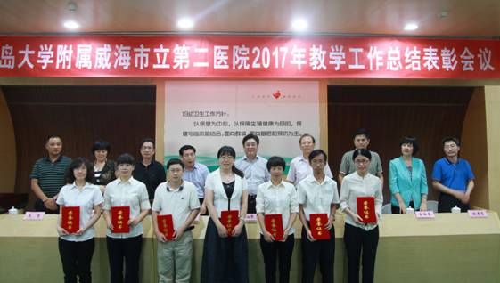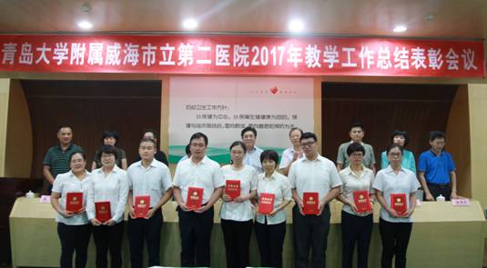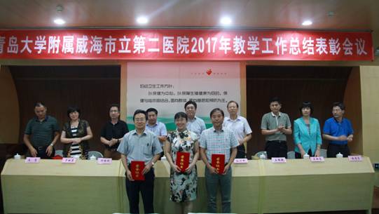 会议首先由孙曰轩副院长宣读了表彰决定,并由院领导分别对优秀教研室、青岛大学教学大赛获奖教师、青岛大学医学部教学大赛获奖教师、青岛大学医学部教学查房大赛获奖教师、住院医师规范化培训优秀秘书及优秀带教老师进行颁奖,第六临床医学院副院长王锦乾教授做《2016-2017学年医院教学工作情况报告》,对医院2016~2017学年临床教学工作进行了总结与分析,对临床教学工作取得的成绩给予了肯定,并对存在的问题进行了具体分析,同时明确了下一步临床教学工作重点和措施。