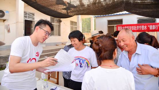 7月4日-5日,医学部师生赴济宁泗水开展“健康行”爱心医疗下乡义诊服务。医学部副部长于文洁,医学部团工委书记、学工办主任周爱霞,辅导员张静老师、宋莉带队,青医附院、心血管病医院、松山医院、校医院的11名医生、12名硕士研究生、13名本科生参加活动。