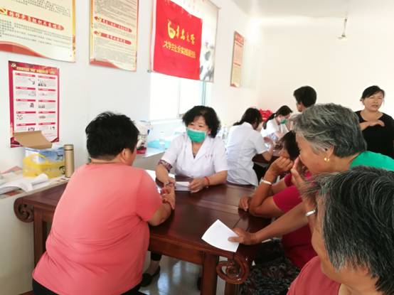 7月5日早7点,爱心医疗下乡义诊服务团分成四个小分队分别前往庠厂村、芦沟村、小河村、东卸甲村四个村庄开展义诊活动。师生们抵达村庄后,有条不紊地布置活动现场、摆放各类药品,迅速投入到工作状态。同学们分工明确,将现场布置成基本信息登记处、血压测量处、医生诊断处和药品分配处四处流水线式服务现场,村民们在同学们的指导下井然有序地排队问诊、拿药。