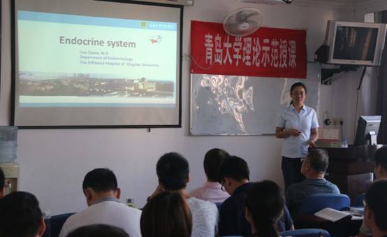 曹彩霞老师以扎实的理论功底、环环相扣的教学流程、落落大方的教学姿态、准确清晰的英语表达、章法有序的授课技巧、重在参与的教学方法,讲授了《Endocrine System》,她将专业英语知识与临床案例、现实生活之间的关系处理的十分恰当,从而为专业英语的多媒体教学进行了科学的示范。