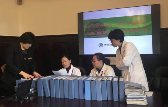 在检查期间,第三临床医学院副院长谭兰教授向检查组汇报了2017年教学工作取得的成绩及存在的问题,并就如何进一步落实国办发〔2017〕63号文件和医学部有关临床教学的文件精神,做好临床教学工作、提升医院的医教研综合实力与检查组进行了汇报。教育科刘霞主任汇报了临床医学专业见习生、各专业实习生的工作安排、临床实习(见习)带教工作。