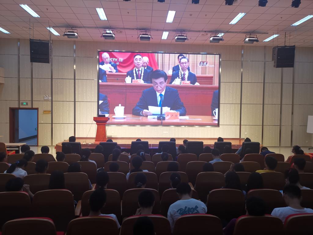 9月8日上午10时,全国抗击新冠肺炎疫情表彰大会在北京人民大会堂隆重举行。医学部组织各部门行政人员、学生代表在医学教育综合楼学术报告厅观看现场直播。医学部党工委常务副书记王有全、副部长于文洁与师生共同观看大会实况。