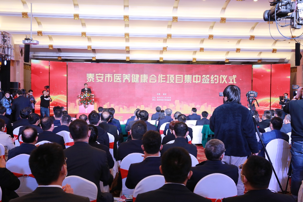 省卫生健康委党组成员、副主任、一级巡视员秦成勇,山东土地发展集团有限公司党委副书记、总经理陈道江,省民政厅党组成员、副厅长张孟强,泰安市委副书记、市长张涛,我校党委常委、副校长于永明,党委医学部工委书记、附属医院党委书记王新生等出席签约仪式并见证签约。