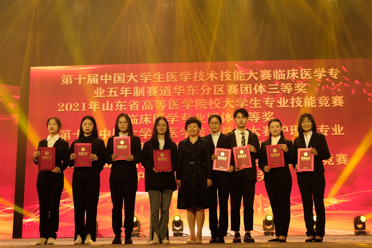 为表彰先进,树立典型,毕业歌会现场还对2021年华东赛区、山东省高等医学院校大学生专业技能竞赛获奖者,山东省优秀毕业生,青岛大学优秀团干部、优秀团员行表彰并颁发证书,为优秀学生代表颁发毕业纪念册。