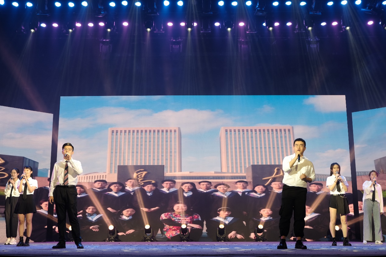 毕业生们用美妙的歌声唱出了青春期的真挚友谊,用魅力四射的舞蹈展示着青春的活力,用动人的表演展示了对大学生活的怀念与对母校的不舍之情。辅导员教师代表的诗朗诵—《梦想出发的地方》,将与同学们相处的点点滴滴娓娓道来,用最真挚的语言表达了对同学们的依依惜别之情、深深祝福之意。