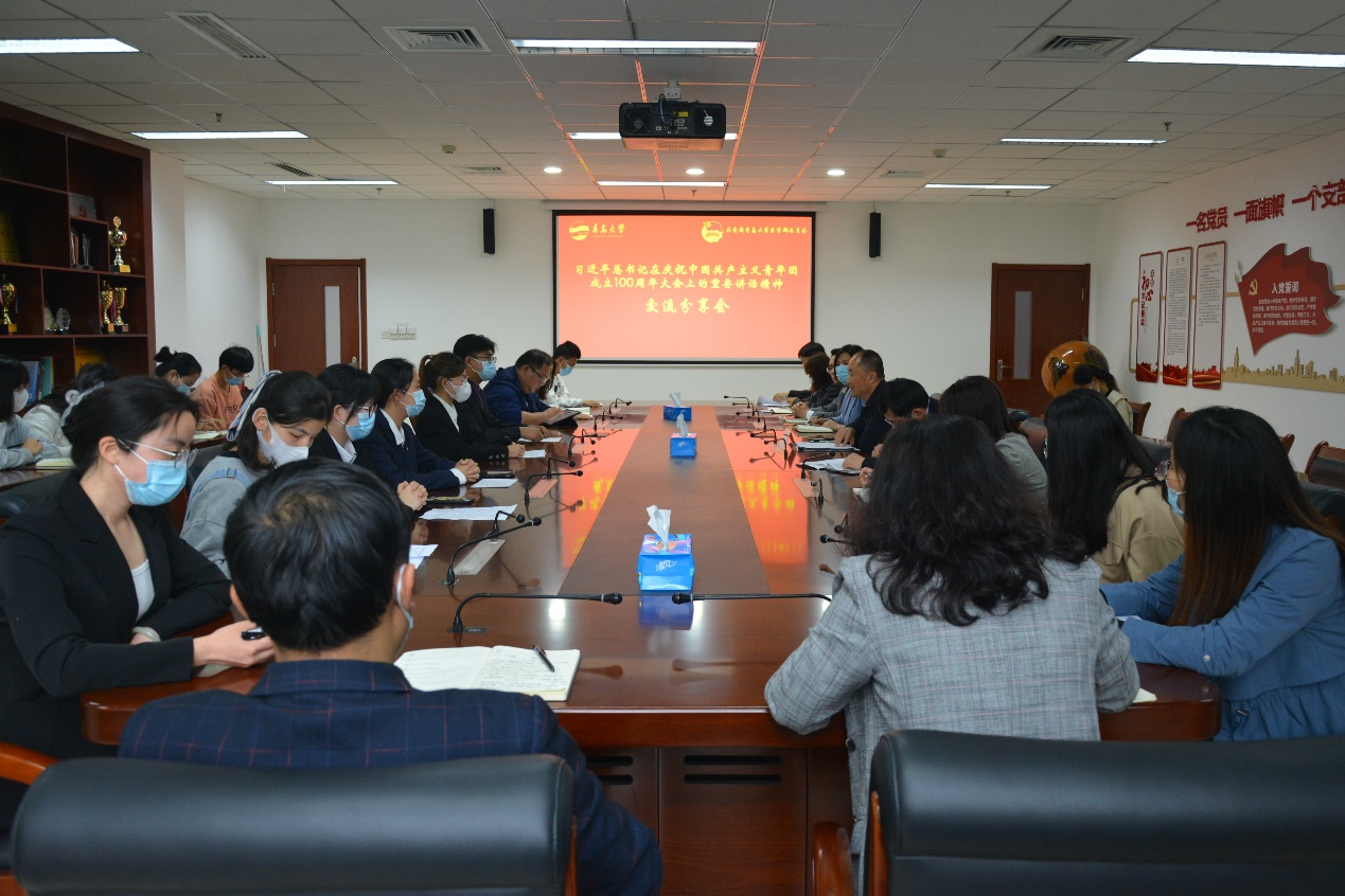 5月11日下午,医学部团委在浩园医学教育综合楼A215会议室举办了习近平总书记在庆祝中国共产主义青年团成立100周年大会上的重要讲话精神学习分享会,医学部党委常务副书记王有全,党委副书记、纪委书记邱慧青,党委副书记刘学,全体辅导员老师及学生党团员代表出席会议并分享了学习心得。辅导员李朝阳主持会议。