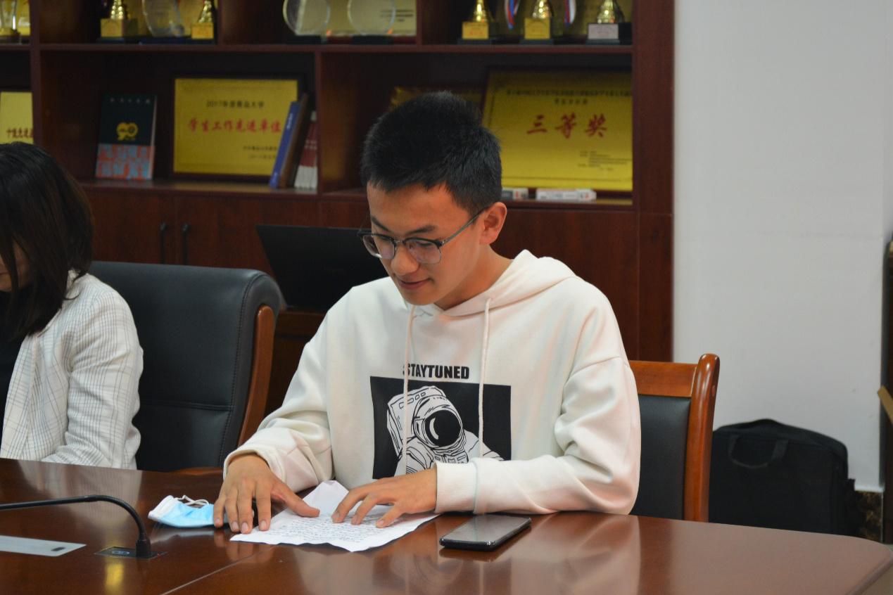 学生代表2020级药学专业本科生王天屹表示在学习习近平总书记在庆祝中国共产主义青年团成立100周年大会上的重要讲话精神后,他感到心潮澎湃,深切感受到党对青年对共青团的深情厚爱,感受到我们生逢其时、重任在肩。总书记讲话既是对百年来共青团紧跟党走,团结带领广大青年所取得的青春成就的充分肯定,又是引领共青团团结广大青年开启第二个百年奋斗目标、实现中华民族伟大复兴的中国梦而奋斗的冲锋号。回眸百年,中国共青团团结带领一代代中国青年奋进争先,在党的事业和民族复兴征程中,书写了无上的青春荣光。面向未来,我们新青年要以“乘山河之风,正浩然气”的姿态,传承五四精神,践行初心使命;以“追信仰之光,壮凌云志”的情怀,坚定不移跟党走,为党和人民奋斗,用实干有为热烈庆祝中国共产主义青年团成立100周年,奋力书写属于强国一代的青春华章!