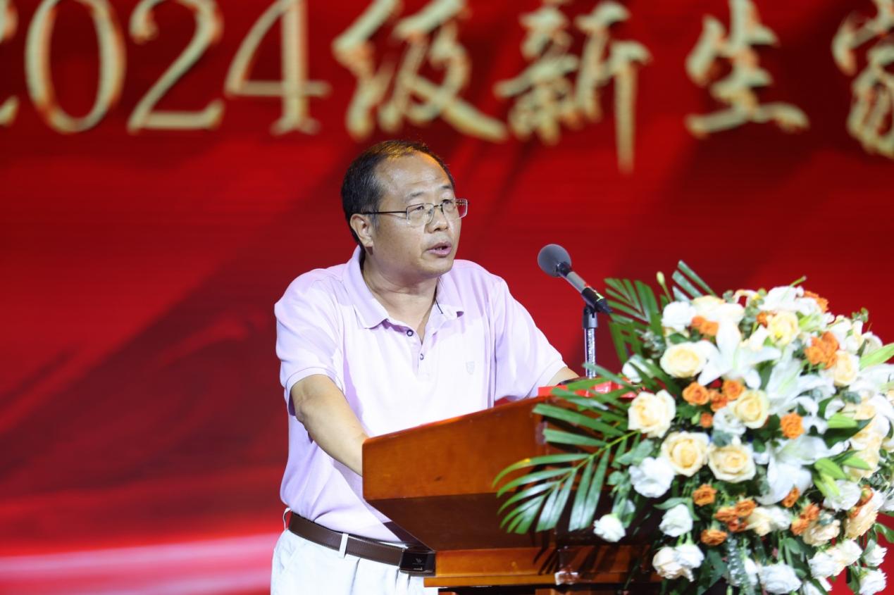 蒋光峰作题为“青心逐梦立长志,医路笃行向未来”的致辞。他简要介绍青大医学的历史发展和辉煌成就,指出正是一代代青医人赓续传承最终凝结成“自强不息、克难奋进、求真务实、开拓创新”的“青医精神”,新时代的青医人都是“青医精神”的传承者也是“青医精神”的践行者。他对全体新生提出三点殷切的期望:一要珍惜时光,夯实基础,牢筑专业根基;二要主动探索,积极实践,培养创新能力;三要挺膺担当,至精至诚,守护人民健康。他勉励同学们坚守初心使命,怀揣医学理想,踔厉奋发、勇毅前行,努力成长为建设国家社会的栋梁之才和守护人民健康的白衣战士。