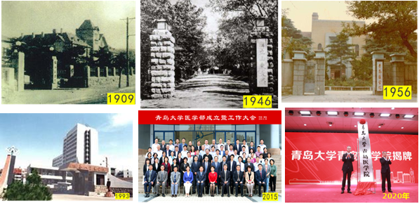 青岛大学医学教育最早起源于1909年的青岛特别高等专门学堂,1946年, 国立山东大学合并青岛医学专门学校,设置成立医学院,1956年, 医学院从山东大学分出,成立青岛医学院,1993年, 青岛医学院与青岛其他几所高校合并成为新的青岛大学,并于2015年12月,对原医学院相关教学科研单位整合成立青岛大学医学部。2020年10月,青岛市人民政府、青岛大学市校共建青岛大学青岛医学院。