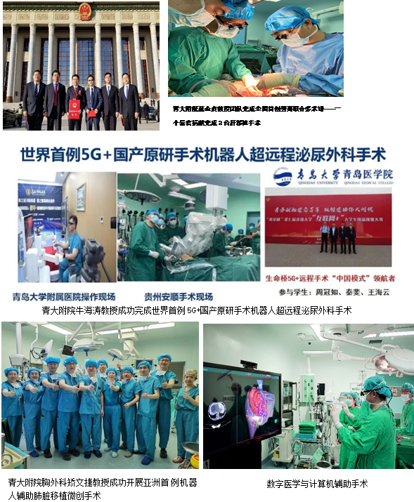 学部拥有13所附属医院,3所教学医院,可供见实习床位20000余张。青岛大学附属医院完成世界首例5G超远程泌尿外科手术;建设国内一流器官移植中心,成功开展亚洲第一例机器人辅助肺脏移植手术和山东省首例人工心脏移植;计算机辅助手术系统参展“国家十二五科技创新成就展”。连续7年位列中国最佳医院排行榜百强,在2020年国家卫生健康委全国三级公立医院绩效考核中位列全国第12位,进入A++序列;位列中国医院科技量值排行榜第35位。