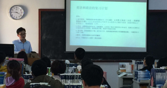 左怀文-山东大学内科学(消化内科)研究生:左怀文的轻松诙谐幽默让我们感觉考研并不是洪水猛兽,考研、实习和玩从来就不矛盾。有计划有步骤是他的特点,什么时间好好实习,什么时间该玩就玩,什么时间开始学习,有节有度,同学们频频点头表示同意。从同学们的表情可以看出来,大家更愿意接受这种学习方式。