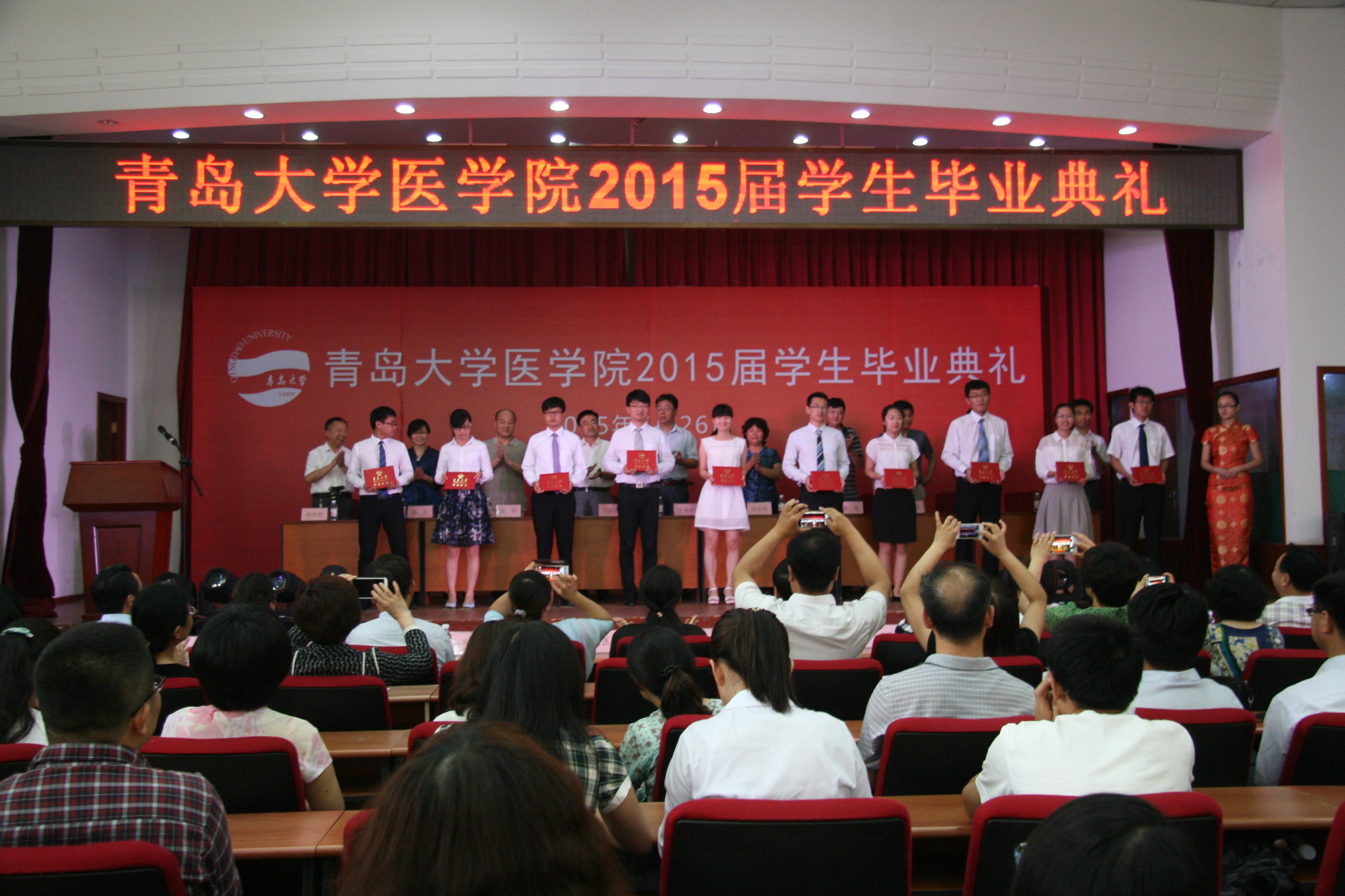 6月25日上午,医学院2015届学生毕业典礼在登州路学术报告厅隆重举行。青岛大学党委常委、副校长,医学院党委书记、院长于永明,医学院党委副书记沈贵荣、韩世教,医学院副院长任洪彦,附属海慈医院副院长唐明,附属威海医院副院长王锦乾等领导和嘉宾出席了典礼。典礼由韩世教主持。