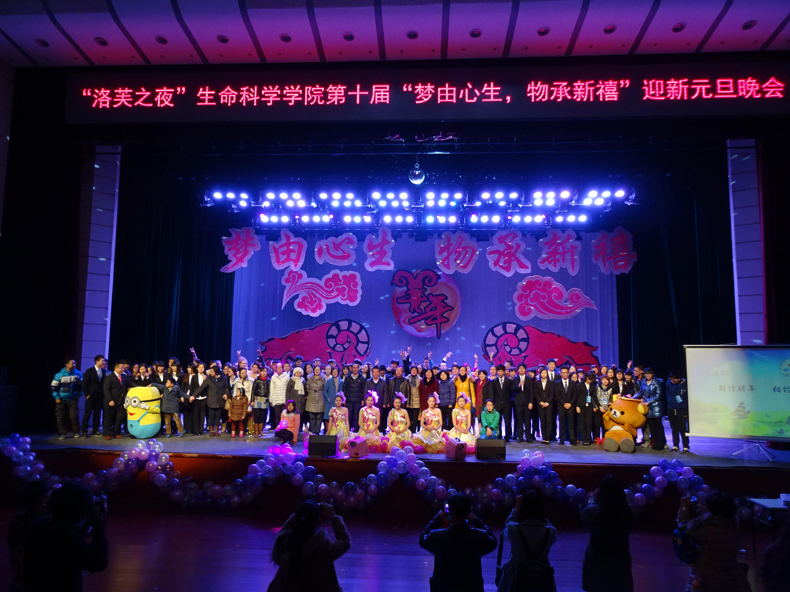 12月12日晚,由生命科学学院团总支主办、生命科学学院学生会承办的青岛大学生命科学学院第十届“梦由心生物承新禧”迎新元旦晚会在青大剧院盛大上演。医学院党委副书记沈贵荣、韩世教,生命科学学院院长李荣贵等领导和同学们共同欣赏了本场晚会。