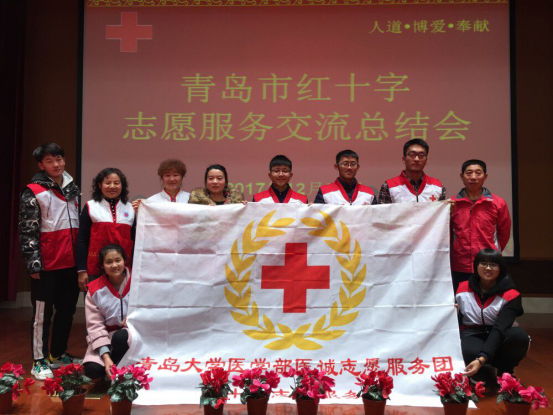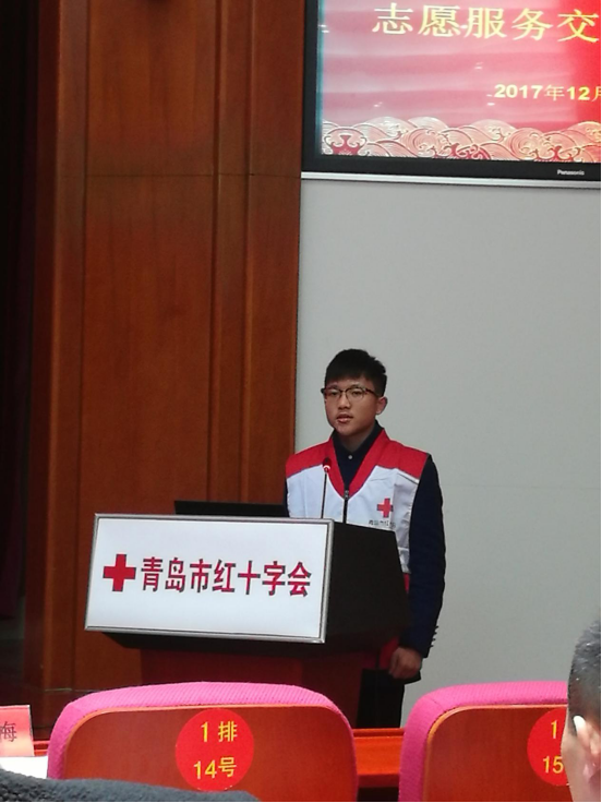 12 月26 日,医学部医诚志愿者服务团红十字志愿服务队参加2017 年青岛市红十字志愿服务交流总结会议。会议在解放军四零一医院综合楼二楼会议室召开,旨在推进全市红十字志愿服务工作,表彰先进,促进交流,与会人员有各区市红十字会分管领导、各区市红十字志愿服务团队、红十字志愿服务基地成员、各高校红十字志愿服务团队等。
