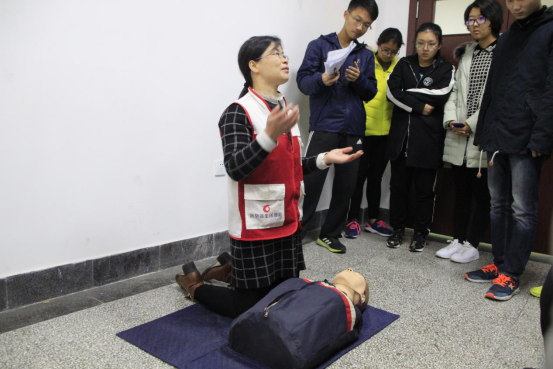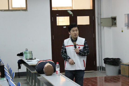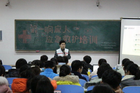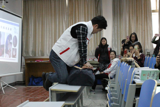 11月18日、19日医学部医诚志愿者服务团、青岛市市北区红十字会在博知楼102教室联合举办了“第一响应人”应急救护培训活动。本次培训由市北区红十字会的六位老师主讲,共有一百名志愿者接受培训。