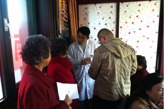 听说有免费义诊活动,当地村民纷纷前来就医问诊,在志愿者导医的引导下,检查、问诊、送药等义诊活动有条不紊地进行。医生耐心仔细地为病人分析病情,讲解注意事项、日常饮食、合理用药等卫生知识,并普及宣传常见病、多发病的预防诊治。志愿者们分工合作,认真地为当地村民测量血压、做心电图、根据医生处方免费发放药品,并对当地医疗现状进行问卷调查。