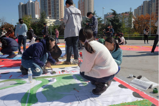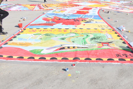 医学部彩绘活动的主题为“新时代下的祖国”。彩绘者以党的十九大召开为背景,将我国新时代下的瞩目成就巧妙融合在一起,借此来展现出日益强盛的国力。从磁悬浮列车到风力发电,从逐渐便利的交通到海上丝绸之路,彩绘者们用一双双巧手勾勒出新时代下祖国的美丽画卷。