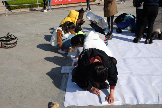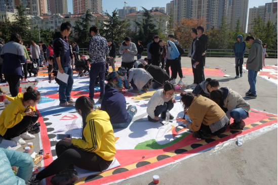 2017年10月29日上午,为庆祝党的十九大的顺利召开,进一步弘扬爱国精神,激发广大学生的使命感和光荣感,由共青团青岛大学委员会主办、青岛大学大学生文明督导岗承办的“青春献礼十九大——不忘初心,砥砺前行”大地彩绘活动在海月广场举行。医学部学生代表参加了此次大地彩绘活动。