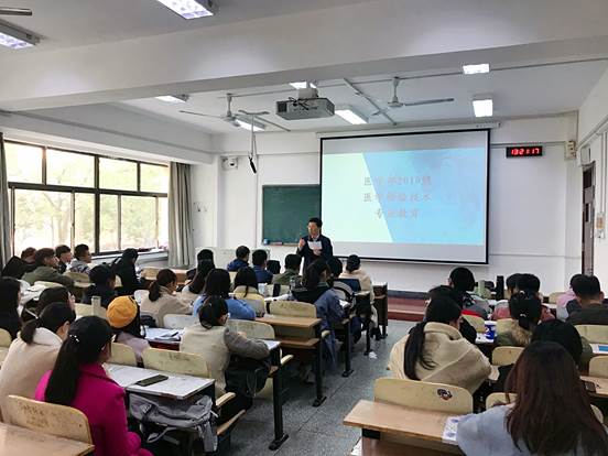 虽已进入初冬,刘教授如春风般和煦的声音却温润了每个医学检验新生的心灵,亲切和蔼的面孔拉近了同学们与老师的距离。他分享了自己在不同时期对医学检验的职业认知,分析了检验专业的学习方法和当前的就业形势,为同学们进行学业指导和学业规划,风趣幽默的讲述赢得了在场同学们的阵阵掌声。