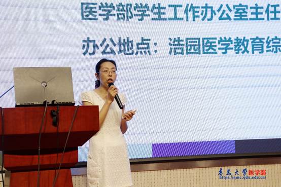 李冰结合校训、办校理念,介绍了医学部的专业建设、在线课程完善、“以学生为中心”的教学方式和学习方式、课程思政教育等,从教务工作方面说明了学生的学习计划、培养方案、毕业条件等,并强调了学业成绩的重要性及对学业困难同学的处理方式。