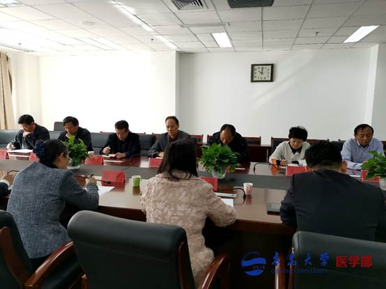 王有全对陈韶娟处长一行到医学部开展工作调研表示欢迎和感谢,他指出,医学部近几年的快速发展得益于学校的人才建设工程和人才引进政策,今后将利用好学校政策,引育并举,推进医学教育发展。