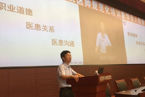 职业道德、医患关系、医患沟通等是当今的医疗热点问题,为此我们特别邀请青岛大学医学部副主任刘成玉教授作为客座教授,讲授作为一名合格的规培医师该如何从德、智、行、勤等诸多方面全面提升自我。刘成玉教授凭借着多年对临床教学工作的不断探索,深入分析学生心理,对学习心态的把握有独到的见解,并且搭配其幽默风趣的授课方式,妙语连珠,一度将全场气氛掀入高潮,整个学术厅座无虚席,学员不时爆发出阵阵掌声,对刘成玉教授精彩纷呈的演讲表示赞服!