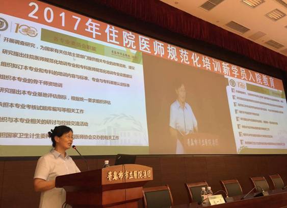 迎着入秋以来的凉爽,2017届规培学员入院教育在东院区科教大楼学术厅盛大开幕,第三临床医学院领导应邀出席与广大学子亲切会面,分别由管军副总院长、谭兰副总院长对新入院的规培生给予希冀及深切的问候,并强调“住培”是一件“苦差事”,但却足以磨练意志,切实提高医师临床能力和岗位胜任力,也是成就精诚大医的必经之路。第三临床医学院(附属青岛市市立医院)作为一个拥有百年历史积淀,集医疗、教学、科研为一体的现代化诊疗中心,相信各位学员能够在此学有所获,劳有所得。
