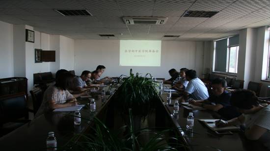 医学部于2016年8月29日下午15:00—17:00在10楼第二会议室召开中医药学院筹备会。会议医学部副主任董蒨主持召开,出席会议的有医学部副主任刘成玉、医学部副主任学科建设与研究生培养办公室姜宏、药学院院长王克威、大学教务处副处长原明亭、附属海慈医院副院长唐明、医学部党政办主任李在宝、医学部本科教育办公室主任严瑛、医学部中医教研室周永红、附属医院中医肛肠科主任赵刚等。
