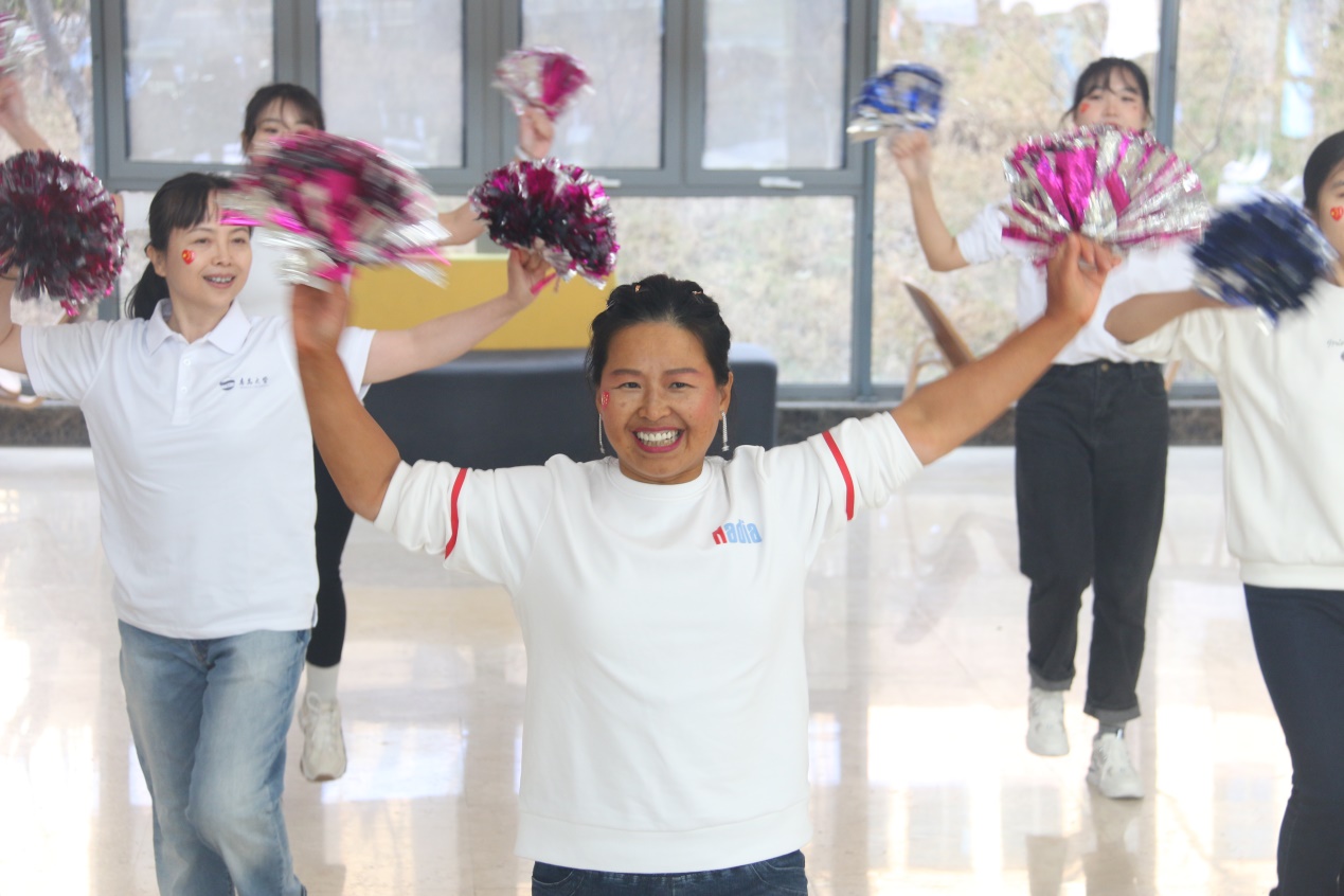 基础医学院代表队,为了更好地呈现工间操展演效果,非常用心地准备了手拉花道具,朝气蓬勃,活力四射。