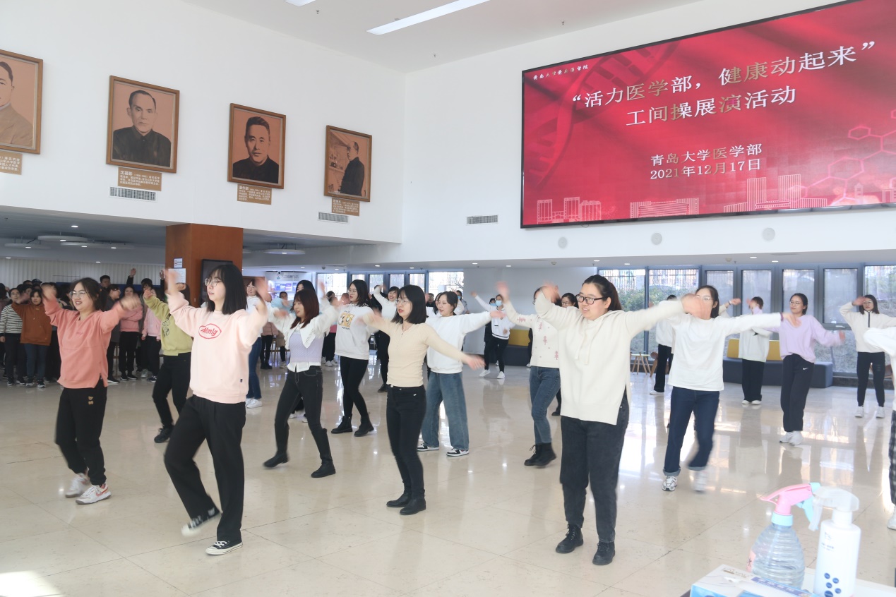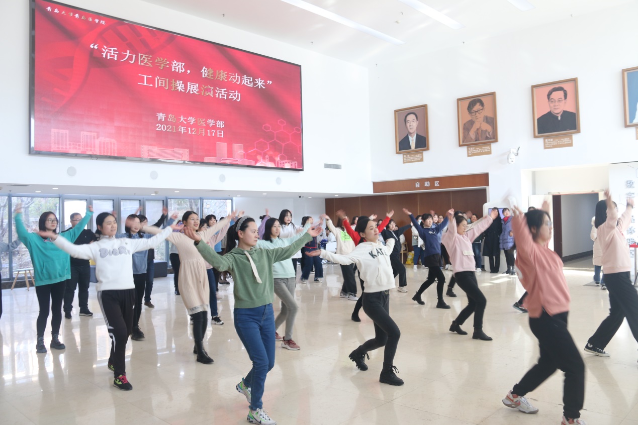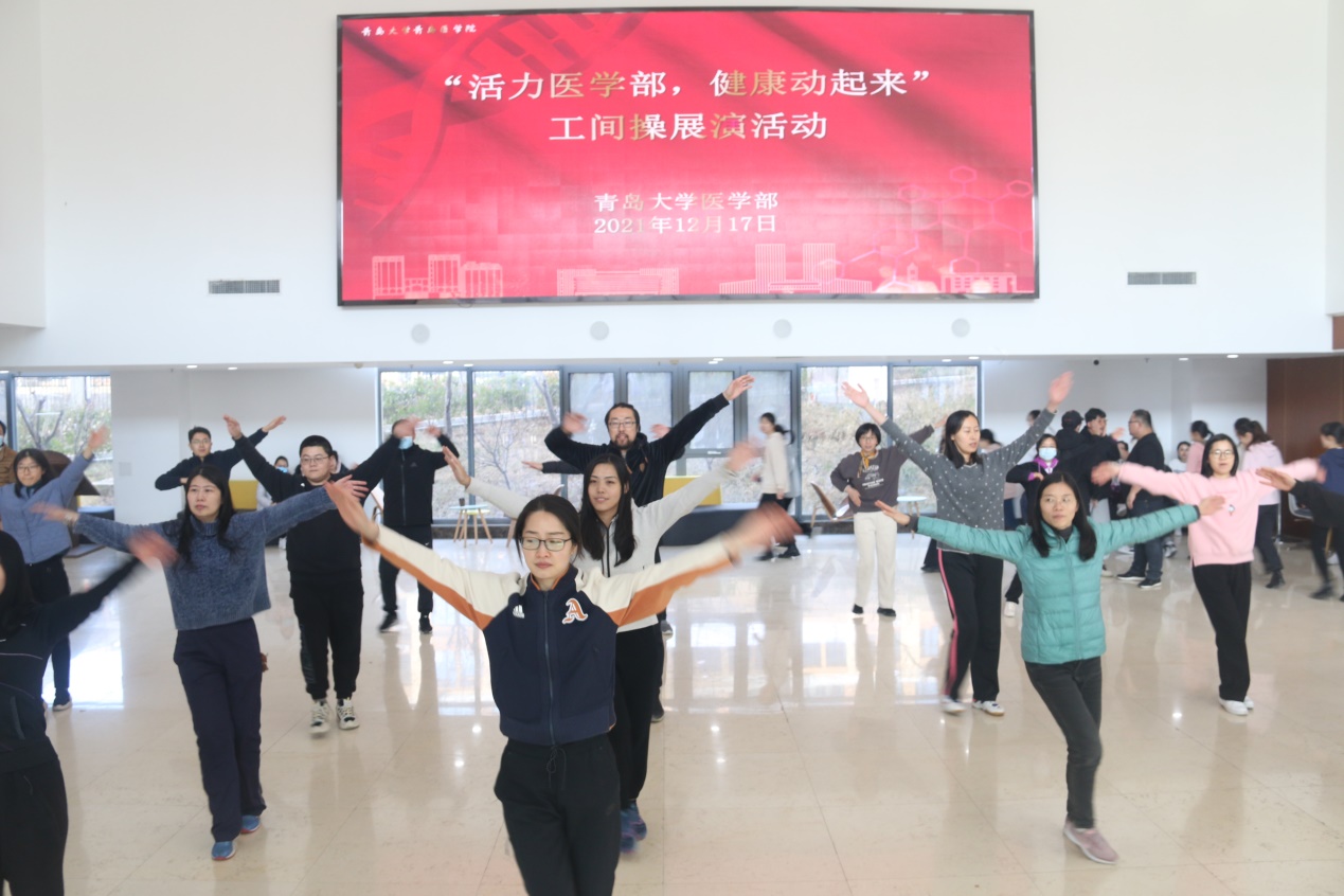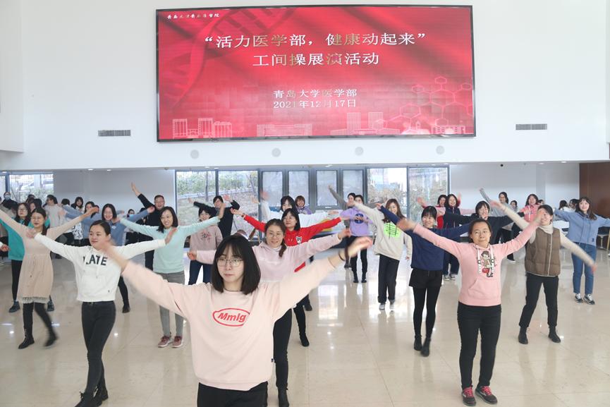 12月17日12:30,由医学部工会主办的“活力医学部,健康动起来”工间操展演活动在浩园医学部教育综合楼1楼大厅举行。校工会副主席、妇委会主任李宏香,体育学院妇委会主任、国家级健美操指导员李敏,医学部工会、各学院分工会负责人出席本次活动。