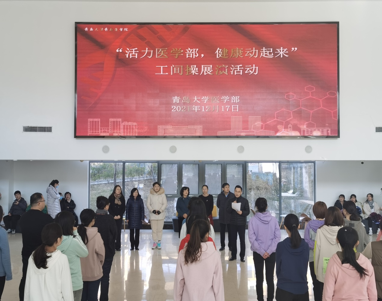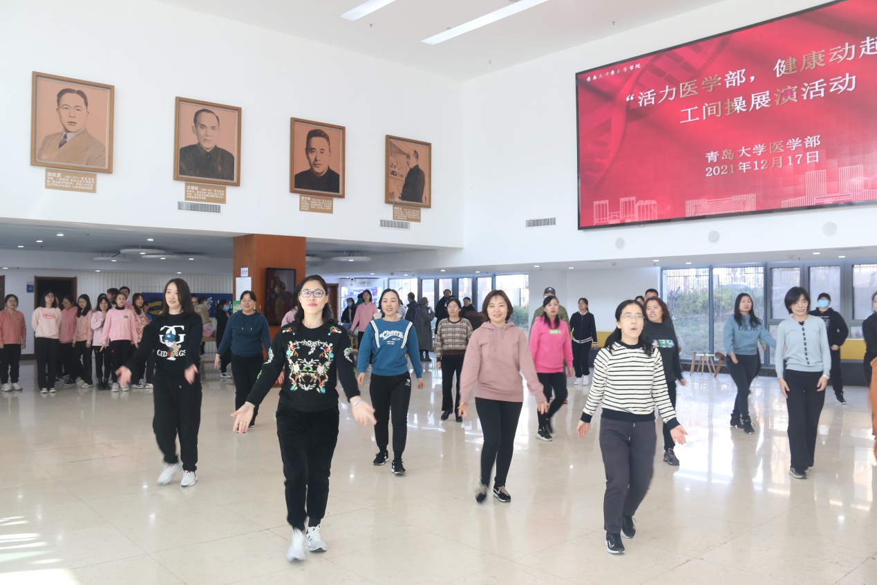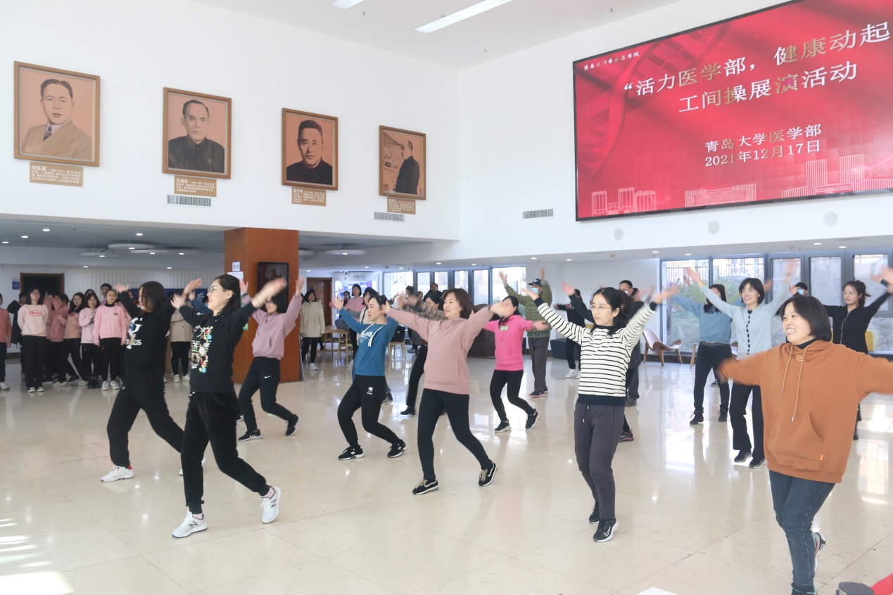 12月17日12:30,由医学部工会主办的“活力医学部,健康动起来”工间操展演活动在浩园医学部教育综合楼1楼大厅举行。校工会副主席、妇委会主任李宏香,体育学院妇委会主任、国家级健美操指导员李敏,医学部工会、各学院分工会负责人出席本次活动。