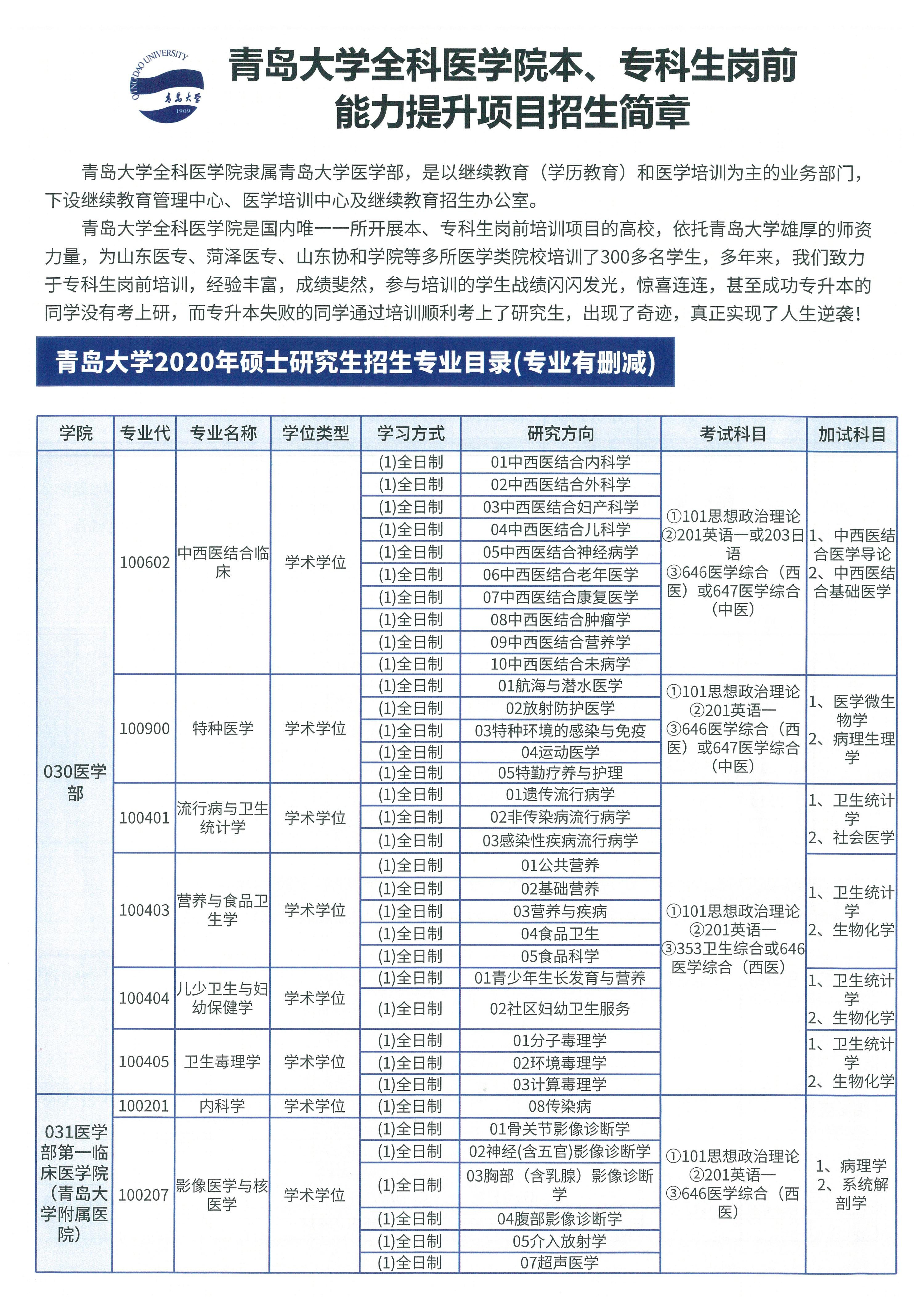 青岛大学全科医学院本、专科岗前能力提升项目招生简章