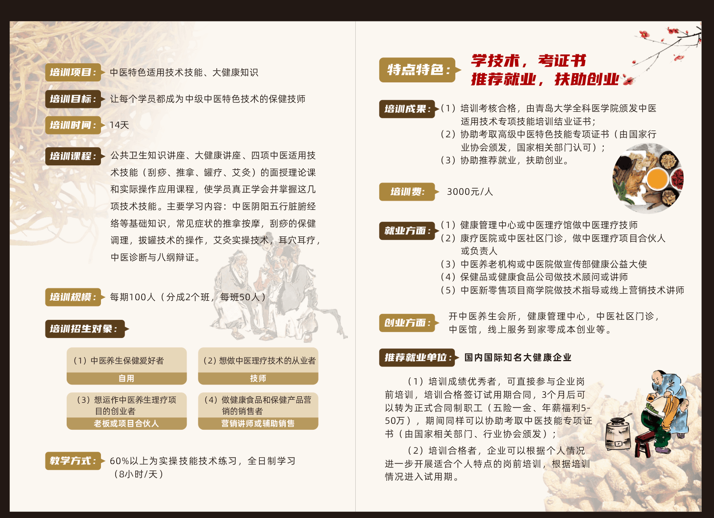 (1)培训考核合格,由青岛大学全科医学院颁发中医适用技术专项技能培训结业证书;