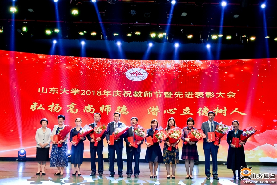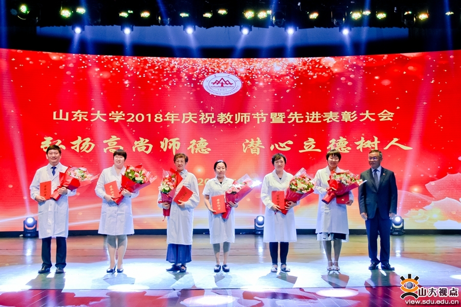 9月8日下午,在第34个教师节来临之际,山东大学在中心校区音乐厅举行庆祝2018年教师节暨先进表彰大会,表彰为学校教育事业作出突出贡献的优秀教师,并对向奋战在教育教学第一线的教育工作者们致以节日的问候。本次大会主题是“弘扬高尚师德,潜心立德树人”,校党委书记郭新立、校长樊丽明出席大会并讲话,山东大学终身教授刘大钧等杰出学者代表出席大会。校党委副书记张永兵主持表彰大会。