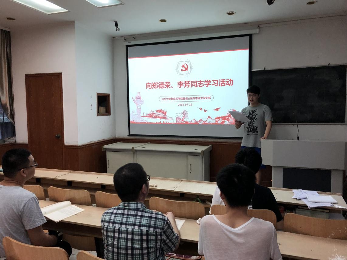 为大力宣传和弘扬郑德荣等同志的高尚品质和崇高精神,充分发挥先进典型的示范带动作用,用实际行动贯彻落实学校第十四次党代会精神,根据学院党委要求,7月12日下午,临床医学院驻省立医院本科生党支部开展了学习郑德荣、李芳同志先进事迹活动。