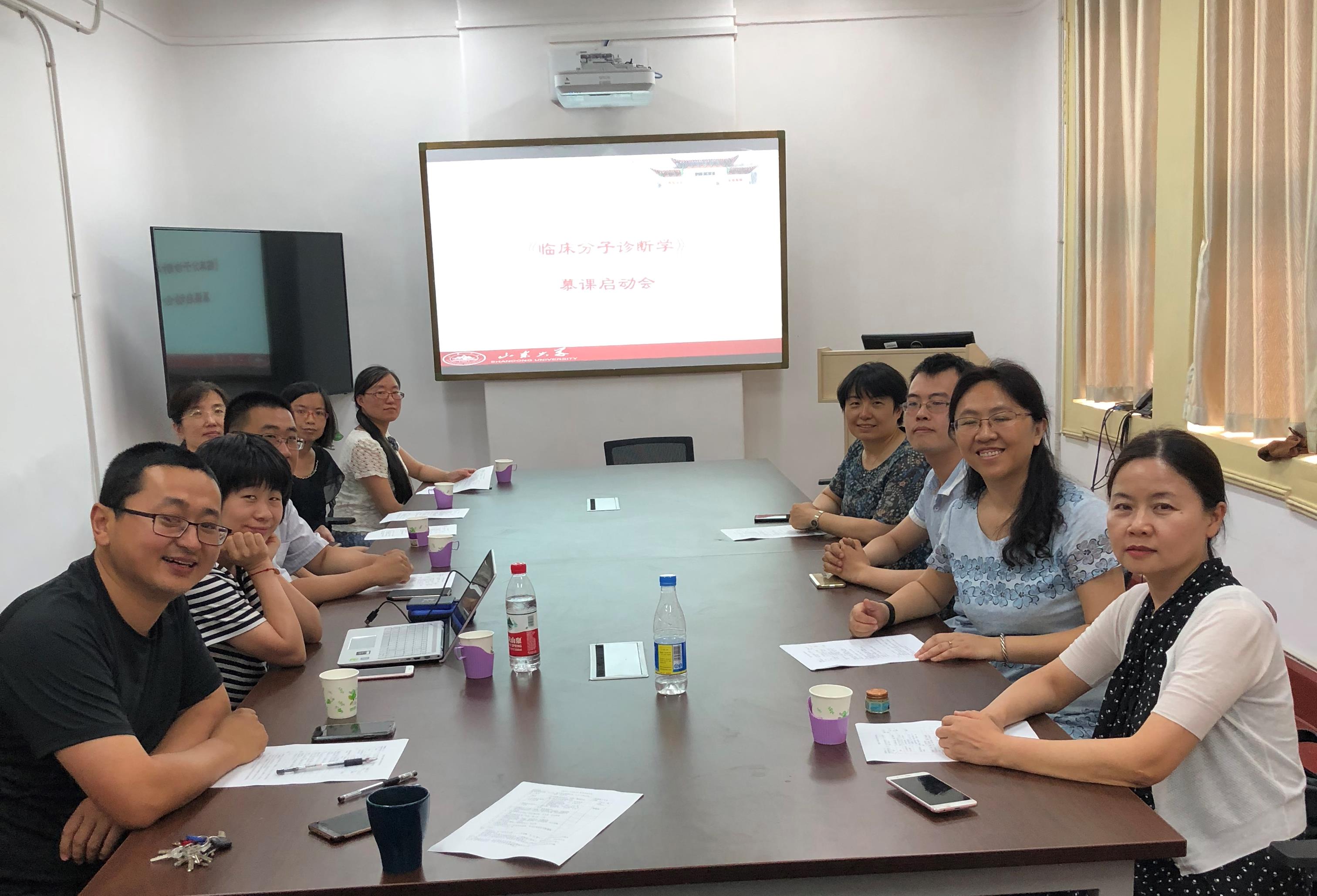 2018年6月20日下午,山东大学临床医学院第二批慕课建设项目《临床分子诊断学》课程建设启动会在山东大学趵突泉校区景蓝斋会议室召开。会议由《临床分子诊断学》课程负责人、山东大学临床医学院诊断学教研室副主任陆楠主持。除来自山东大学临床医学院诊断学教研室、基础医学院分子生物学教研室、齐鲁医院检验科和肿瘤中心的教学团队成员参与会议以外,会议还邀请了临床医学院的朱承老师、智道网络郭平老师参与会议。