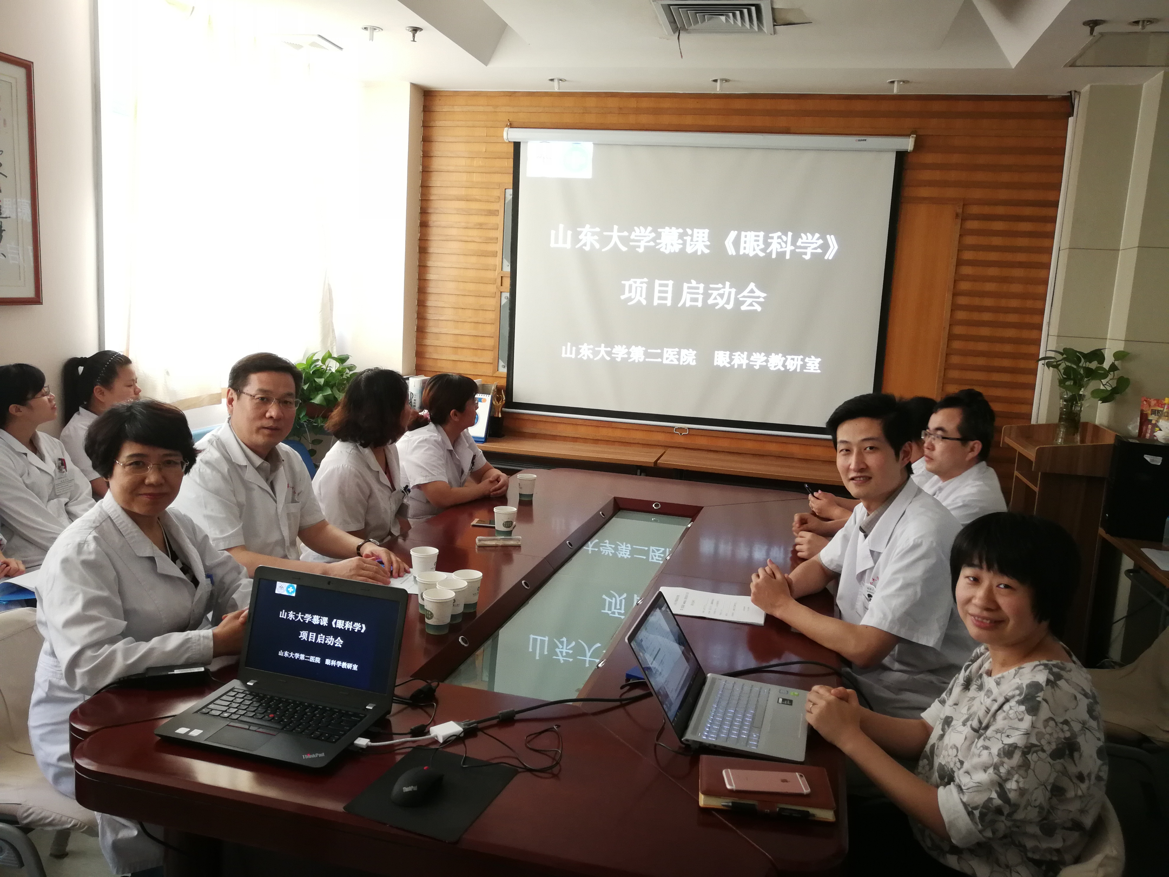 2018年06月12日下午,由山东大学临床医学院立项的第二批慕课建设项目--《眼科学》课程启动会在山东大学第二医院明德楼眼科会议室召开。会议由《眼科学》课程负责人、山东大学第二医院眼科主任张晗主持,临床医学院第一批慕课项目负责人、皮肤科张春敏主任,智道网络郭平老师出席会议,眼科学授课教师10余人参会。