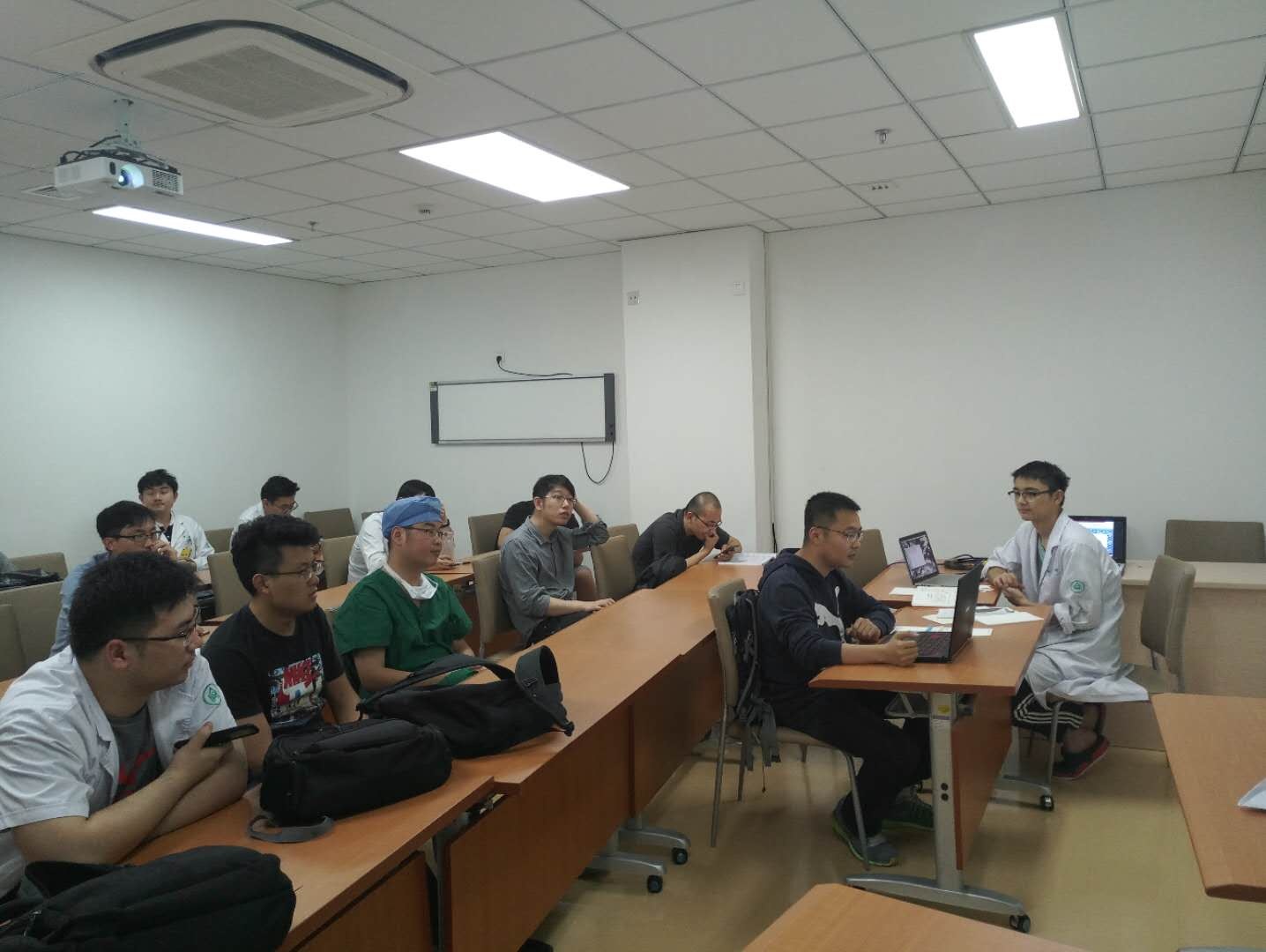 5月31号下午,驻齐鲁医院研究生第四党支部全体党员在齐鲁医院华美楼F7D学习室,开展了以“不忘初心、牢记使命、心系母校、立志报国”为主题的主题党日活动。活动由党支部书记罗力主持,全体党员参加活动。