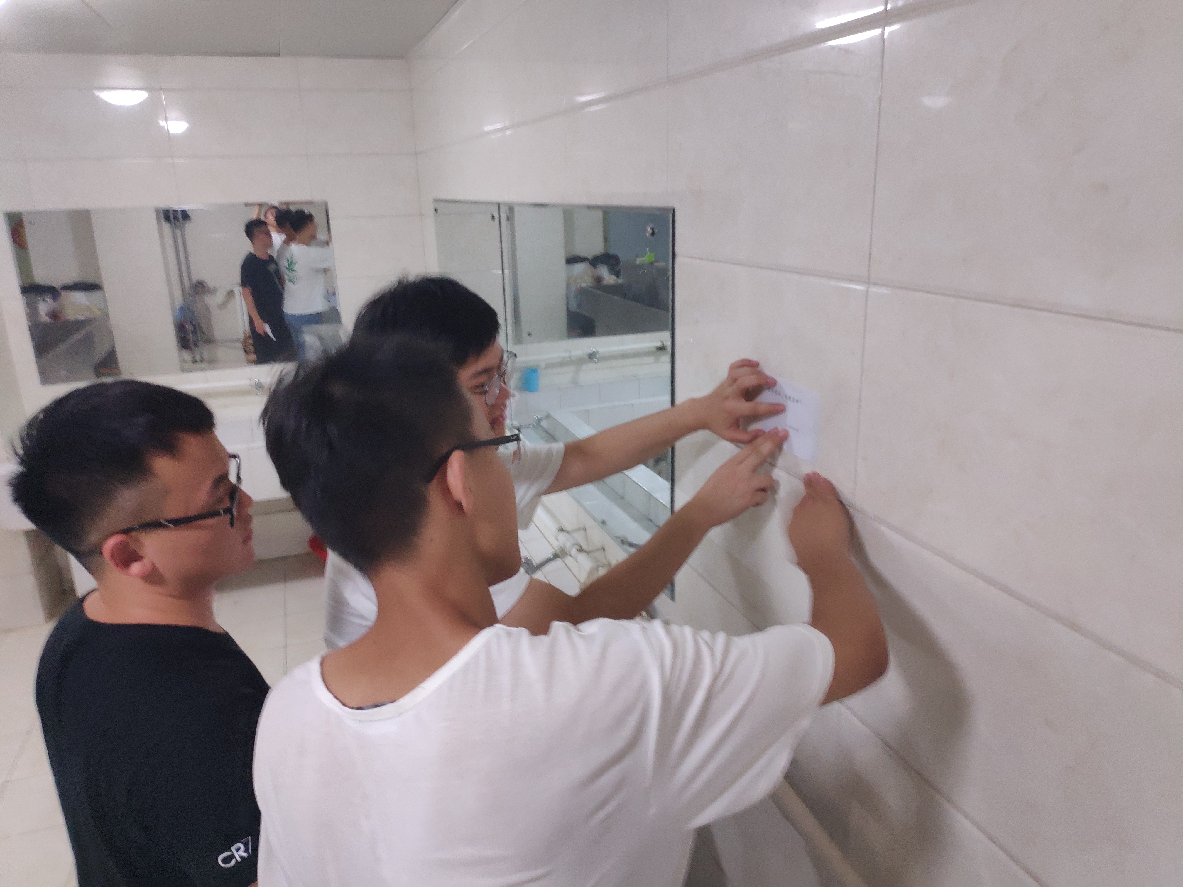 活动开始前,党支部副书记汪洋在筹备会上对这次活动的意义进行了解读,带领大家进行充分的讨论并做好前期材料准备工作。筹备会结束以后,党支部18级党小组的成员们开始行动起来,在教室、走廊、卫生间贴放“文明自习,请勿在教室大声喧哗”,“节约用水,关爱生命”,“来也匆匆,去也冲冲”等相关文明标语,以督促在院学生们讲文明、讲礼仪,活动开展之后赢得了师生赞许和响应,营造文明环境取得了初步效果。