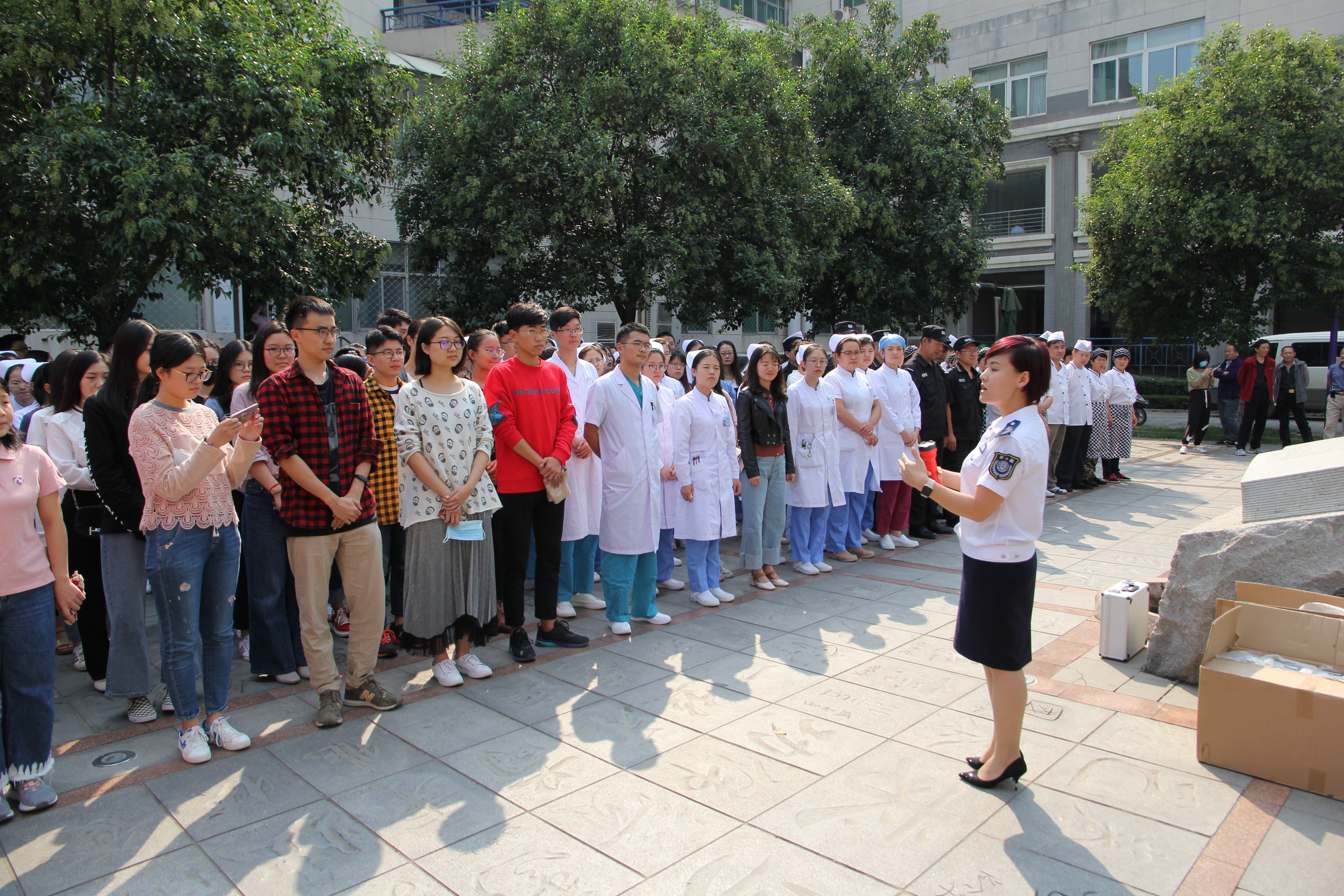 中心医院副院长王树美在演戏活动中讲话,随后,演习活动正式开始。宣教处教官通过一些典型案例,讲授了医院火灾隐患及防范要点、医院各重点科室如何防范火灾,及火灾发生后如何运用毛巾、防烟口罩开展自救、互救、引导病员疏散撤离等知识及技能。在辅导员老师的带领下,同学们踊跃参加并完成了火灾逃生、灭火器使用的模拟演练。