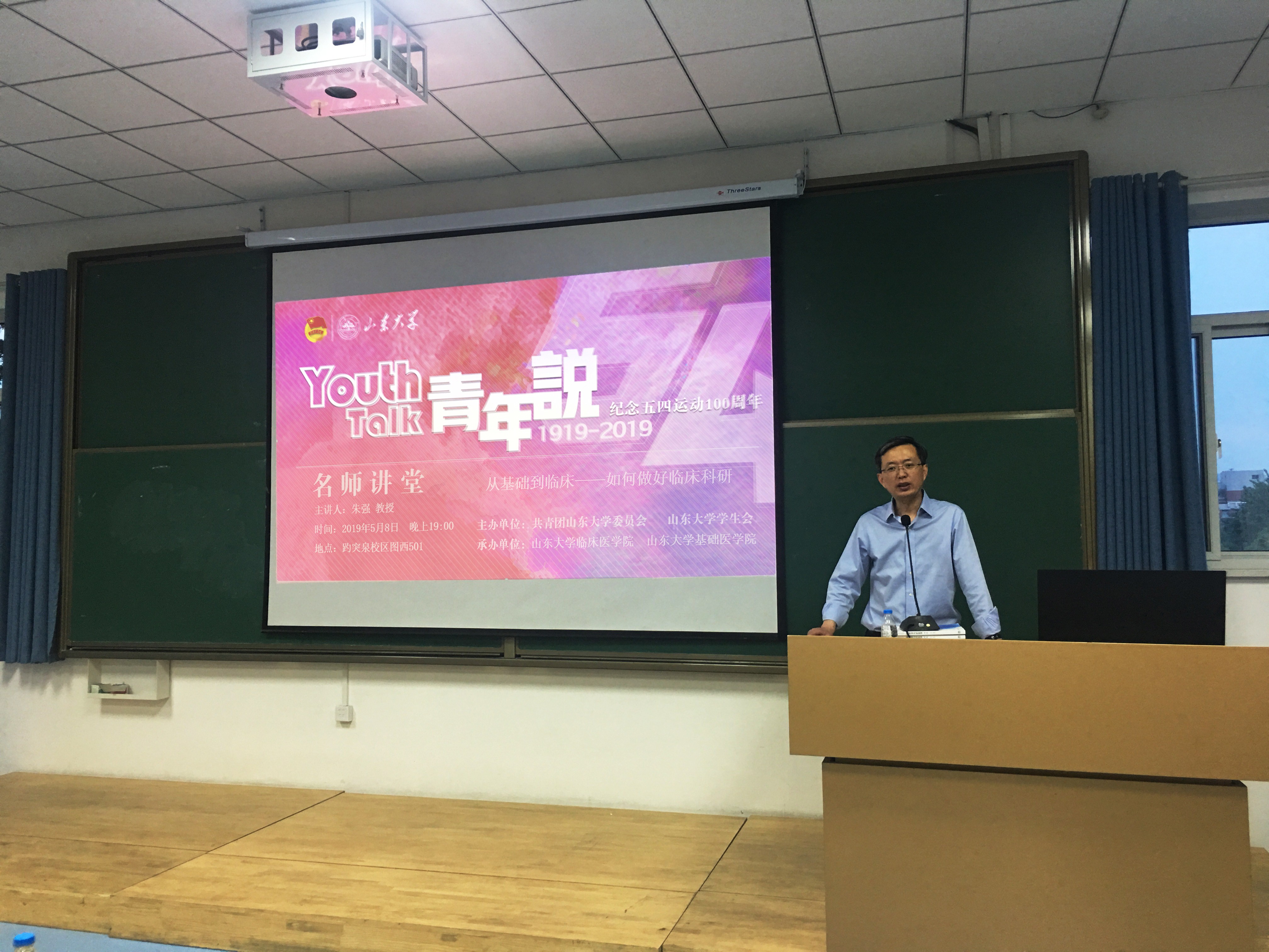 5月9日,由共青团山东大学委员会、山东大学学生会主办,临床医学院与基础医学院承办的“Youth Talk青年说”名师讲堂于趵突泉校区图西501教室顺利举办。山东省立医院消化内科主任医师、博士生导师朱强作专题讲座。临床医学院党委副书记孙钰、部分辅导员及300余名临床医学生参加活动。