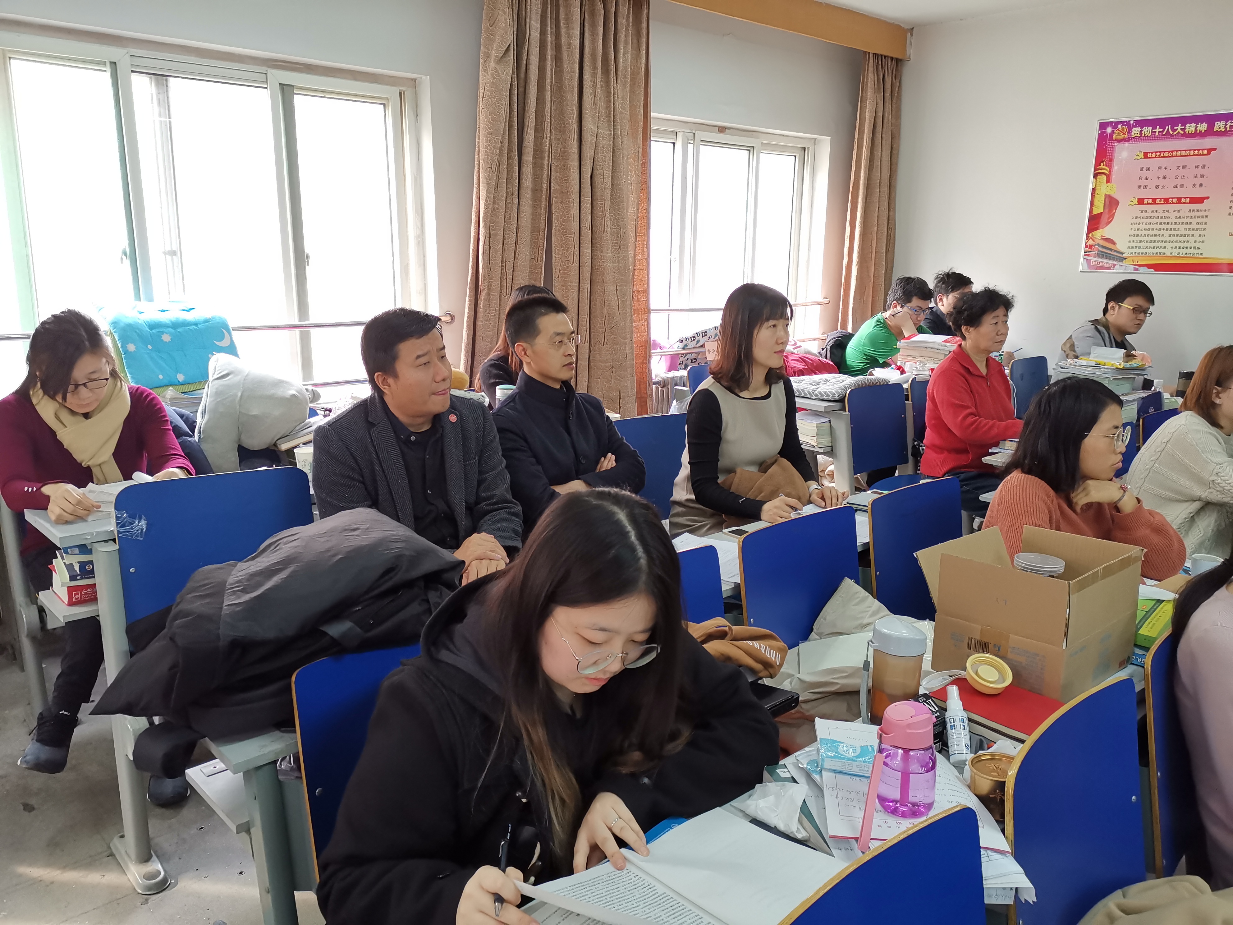 省立医院长学制学生辅导员袁园、中心医院本科生辅导员付辉通过进课堂、进宿舍等举措,全面掌握新学期开学后学生的学习及生活状态,并以班会拉开了新学期工作的帷幕。在班会上,老师们针对学风建设、实习见习、宿舍安全等问题提出新的要求,督促同学们以全新的面貌开启新的学期。
