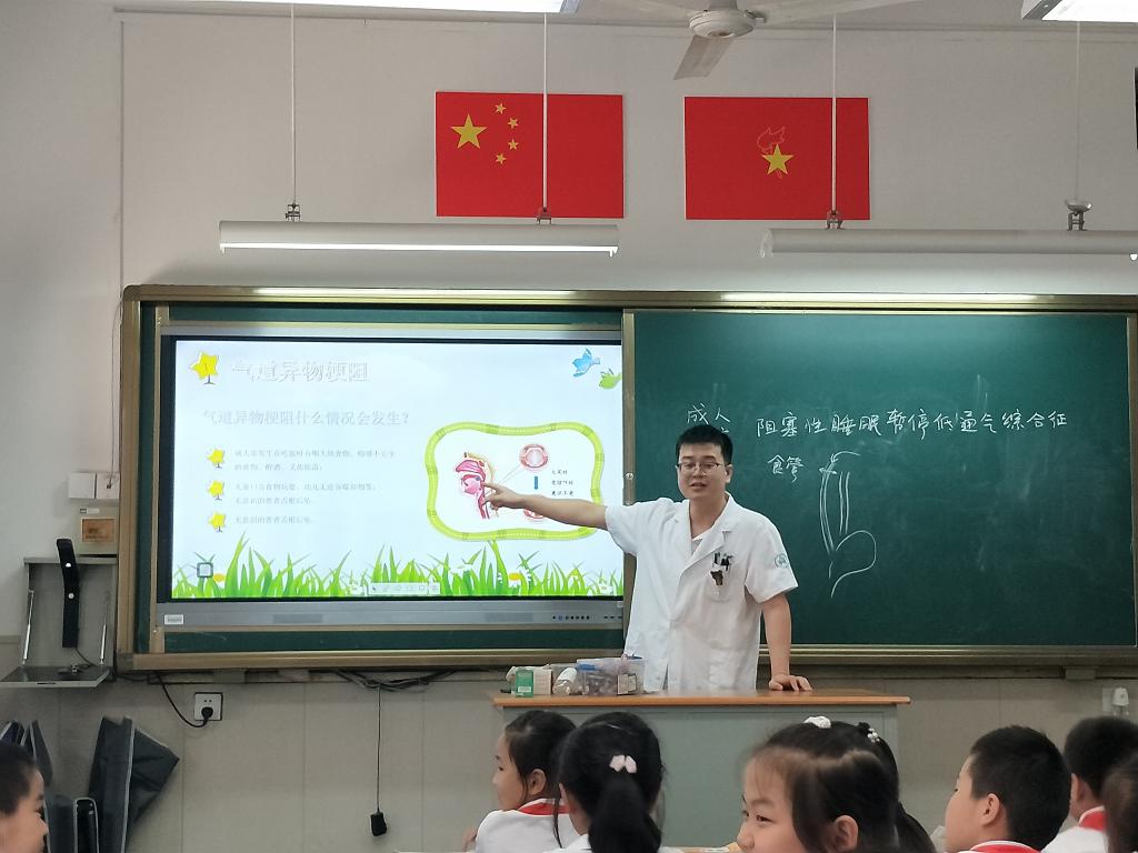 本次活动由支部书记雍蓉带队,支部眼科、耳鼻咽喉科党员代表王晶晶、冯晨作为主讲人员,为山医小学二年一班的同学们上了一堂生动的健康宣讲课。针对小学生保护视力和日常急救知识进行了深入浅出的讲解,加深了同学们对近视、气管异物、食管异物危害的认识。活动现场,同学们认真听讲,踊跃回答提问,与支部党员们积极互动。