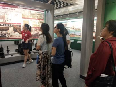 在讲解过程中,宣讲员们时不时根据馆藏文物和展板提出问题,与观众进行互动,激发其参观兴趣,并且注意随时与观众保持沟通,解答疑问。在第二展厅,面对着眼前陌生的历史文物,有观众向宣讲员们询问它们的用途,宣讲员们循循善诱,引导观众自己找出答案,这种双向互动的宣讲方式受到了观众的一致好评。同时,考虑到观众的学历层次不同,专业不同,宣讲员们选择不同的历史重点进行讲解,力争保证观众听得满意,听完有收获。